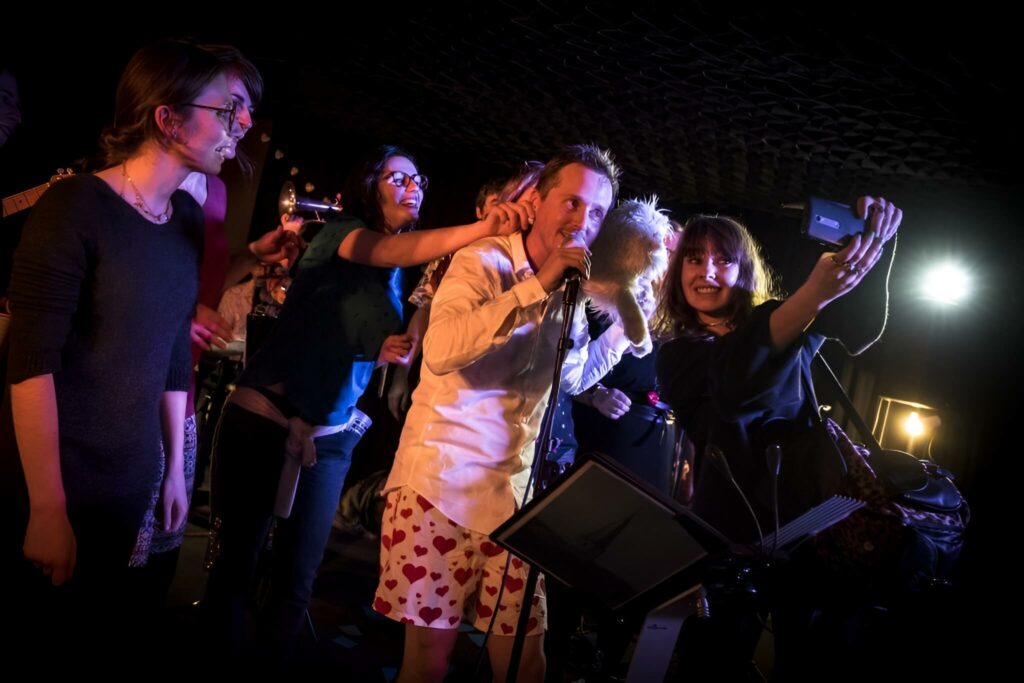 Choisir, c’est renoncer. Gauthier Galand a choisi, lui, de ne pas choisir. Pas forcément pour avoir fromage et dessert, mais plutôt costard et peignoir qu’il enfile l’un au-dessus de l’autre. Gauthier Galand, que nous avions rencontré en juillet dernier, est un personnage un peu naïf. Un candide à la Voltaire, né au tout début des années 2010, qui n’hésite pourtant pas à donner son avis sur les grands sujets de société. C’est aussi un garçon qui tient ses promesses. Il avait promis à son public un album pour février 2020. Eh bien, ce vendredi soir, il réunit quelques potes à lui pour festivement fêter la sortie de Chanteur humanitaire.